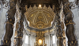 Una volta entrati, siamo letteralmente sopraffatti dalle dimensioni degli interni: tutta la fabbrica, dall’abside al portico, è lunga ben 213 metri! Ci si rende conto delle incredibili misure della costruzione avvicinandoci progressivamente ai vari elementi decorativi, basti pensare che le due acquasantiere settecentesche con putti che sorreggono le vasche, sono alte ben 2,40 metri! Nella basilica vaticana i nostri studenti potranno ammirare capolavori celebri in tutto il mondo, come la Pietà scolpita tra il 1497 e il 1499, considerata il primo capolavoro di Michelangelo, allora poco più che ventenne, il baldacchino di bronzo che sovrasta l’altare maggiore alto come un palazzo di 8 piani, opera di Gian Lorenzo Bernini con importanti contributi di Francesco Borromini, la statua bronzea di San Pietro in Cattedra opera di Arnolfo di Cambio, i monumenti funebri di Gregorio XIII Boncompagni, Paolo III Farnese, Urbano VIII Barberini e l’incredibile vastità della cupola michelangiolesca (alta 133 metri) che vista dall’interno è ancora più impressionante.